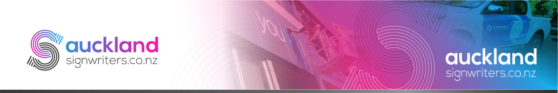 We can signwrite your logo onto one off ute, cover your complete car with a full wrap or half wrap your van. Likewise we can signwrite complete Auckland vehicle fleet, including ute signs, van stickers, car grphics, or truck decals.Or we can design and install bold sign writing for your building or shop signage, including plinth signs, reception signage, retail signage, way finding systems, floor graphics and promotional signs.